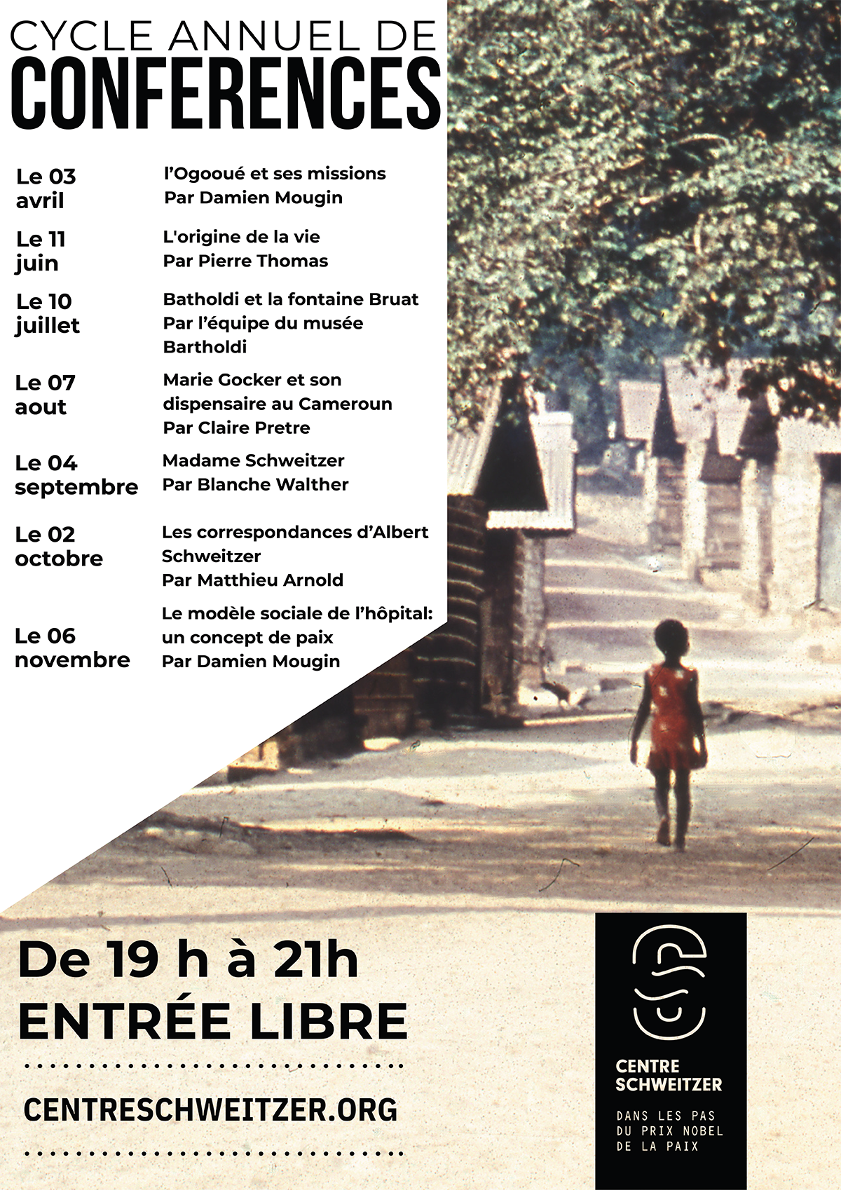 Le premier vendredi du mois à 19h, un conférencier aborde la vie et le parcours d'Albert Schweitzer ou une thématique liée à son œuvre sous un angle inédit.