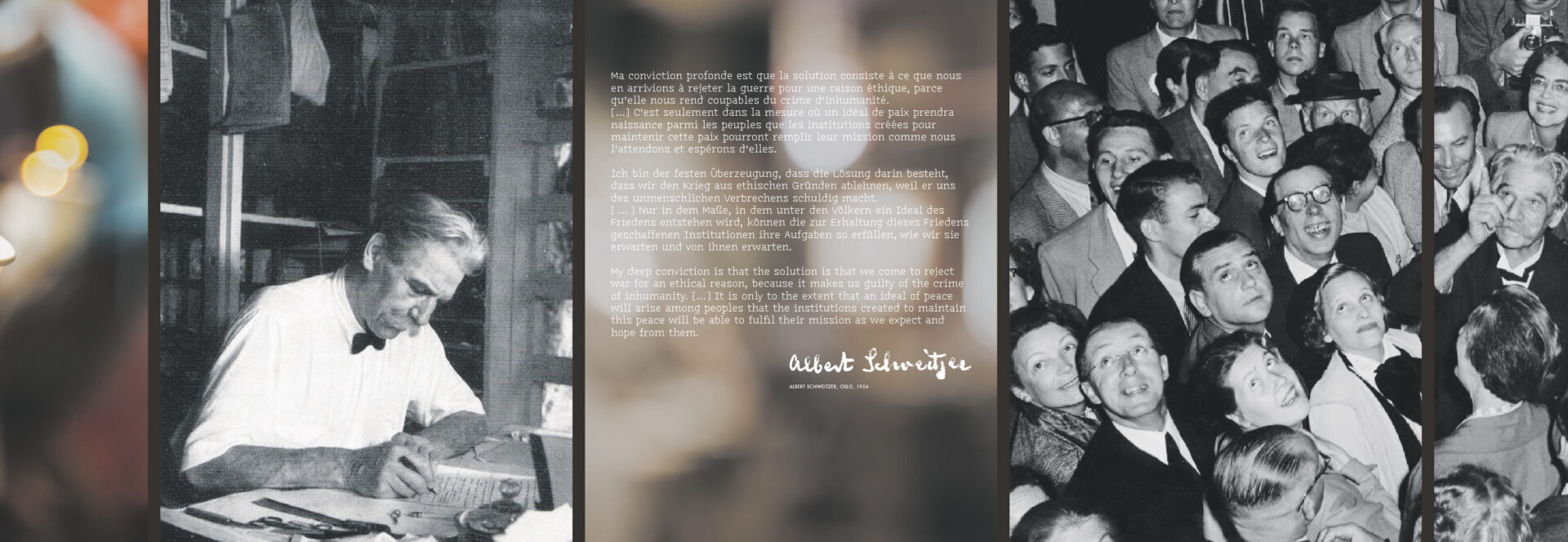 Pour Albert Schweitzer, la Paix est une évidence. Elle est ancrée en lui depuis son plus jeune âge, c’est son idéal de vie, dans lequel s’inscrit son éthique du respect de la vie.